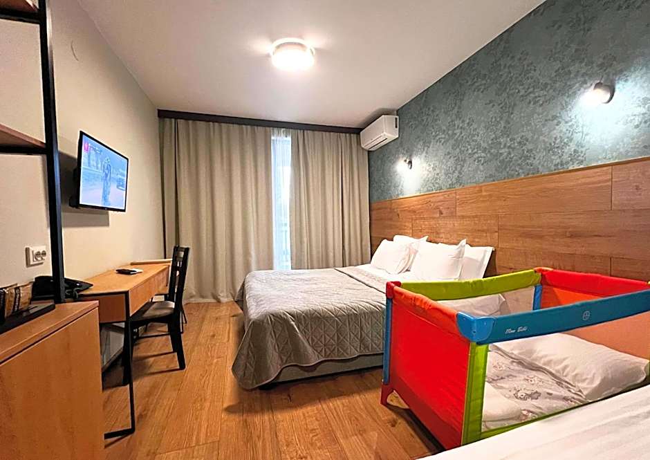 Snow adventures are easy with on-site ski rental and spa/wellness packages to unwind afterward. Families are well-catered with a free kids’ club, while staying connected is simple with free Wi-Fi and a free fitness center. Dining is convenient at the on-site restaurant Ресторант #1, offering a mix of Mediterranean, seafood, steakhouse, international, European, and grill BBQ dishes in a family-friendly, modern setting.